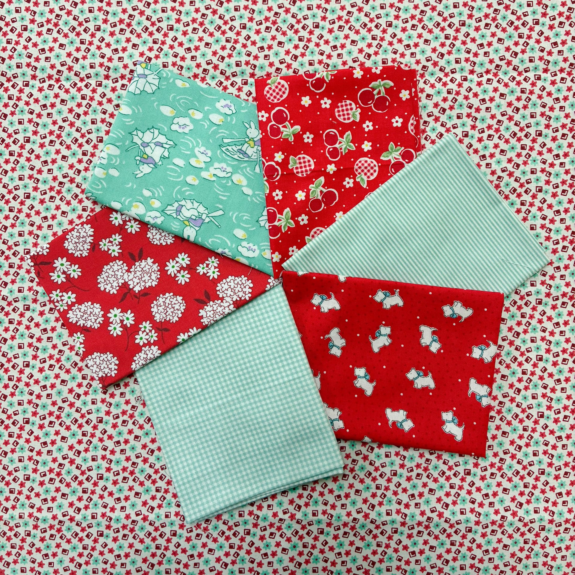 Henryglasfabrics 星と金平糖とブロック柄の生地(反物カット)
