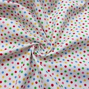 サーティーズプリントらしいポップなマルチカラーのドット柄の生地です